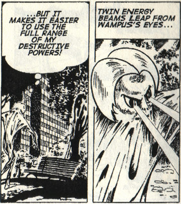 Wampus is the story of an alien monster with shapeshifting powers who has been sent by an evil cosmic intelligence -- the "Great Mind" -- to destroy Earth. He is discovered and pursued by French secret agent, Jean Sten. In the course of six issues, Wampuscauses havoc and destruction in France, Germany, New York, Tokyo, London (which is destroyed by a tactical nuclear device) and Spain.