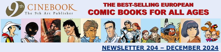 Dear Reader, |      | Well, 2024 is coming to a close, and we’d like to make sure this year goes out with a bang-bang – with a brand-new episode of none other than Lucky Luke! The Lonesome Cowboy suddenly has to contend not just with the usual outlaws and prairie hazards, but instead with the dangers of an urban environment and industrial action! Strikes in the breweries of Milwaukee threaten the West’s way of life – can Luke sort it out?! All of us here at Cinebook wish you the best and merriest of holidays, and we will see you in 2025 – with more wonderful books, more outstanding series … and a couple of thick, rigid surprises! You’ll see, by Jove! December with Cinebook – please read responsibly! |        |  | This month, we’d like to shine a spotlight on a fairly new bookshop in Edinburgh, Scotland. La Belle Adventure was opened this year by Annabelle and Benoit, two natives of South-Western France. After a long history with the world of the 9th Art (comics) they moved to Edinburgh with the intent of correcting the absence of a place dedicated to bandes dessinées in the Scottish capital. But this laudable aim is not their only one, and they return the Scottish people’s love of French culture with their own interest for the local comics production. In their shop, you will find BD in French, English translations such as our titles, and also comics from small local publishers – a sort of cultural Auld Alliance. You will also find an exhibition area for events, meetings and signing sessions with, and exhibitions of the art of, French and Scottish artists – often in collaboration with the Institut Français of Edinburgh and the Glasgow Alliance Française. If you’re a fan of French comics, or eager to learn more about Scottish comics, and you find yourself in or near Edinburgh, then we cannot encourage you enough to pay La Belle Adventure a visit, and lend your support to their already growing success! |