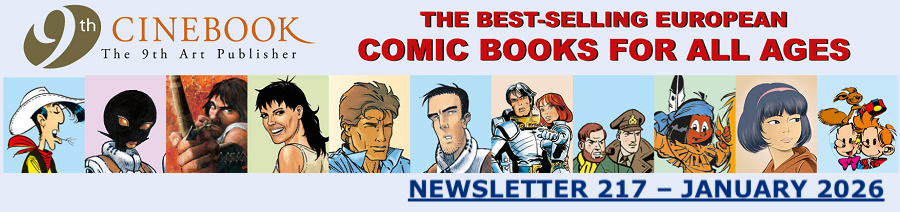 2026 is out of the starting blocks, and Cinebook will be there throughout the year with wild and exciting adventures of all kinds, for all ages – we promise! And we start right away with the concluding chapter of Amazonia, in which British spy Kathy Austin must decide what to do with the Nazi submarine full of gold she’s found in Brazil – though there are a few other people who might have their own ideas … She’ll also have to deal with the superpowered albino she was after in the first place. Busy girl, Kathy! In the latest Bluecoats, Blutch and Chesterfield find themselves looking after an extremely young new recruit, Pucky, who enjoys banging on his drum a little too much for everyone’s comfort. But, well, surely you can’t blame a kid for being enthusiastic about his new job, right? What harm could there be in it …? As for Buck Danny, his latest Classics adventure takes us back to the 50s and the Cold War, for a brand-new two-parter full of vanished nuclear scientists, cutting edge supersonic jets, dastardly KGB plans, and a whole lot of edge-of-your-seat dogfights and action sequences. No spoilers, obviously, but it’s another wild ride – and the conclusion comes out next month! Finally, we’d like to let you all know that volumes 1 and 10 of Lucky Luke have been reprinted and are once again available for purchase. Time to complete your collection – or start a new one if you haven’t given the Lonesome Cowboy a try yet! January with Cinebook – new year, new fun! |