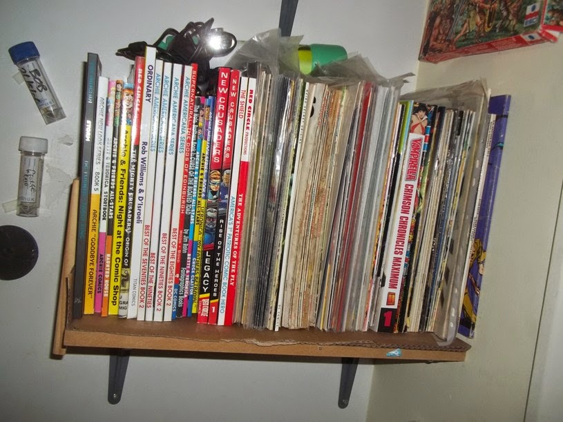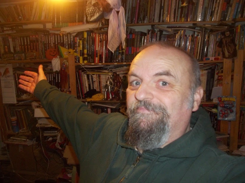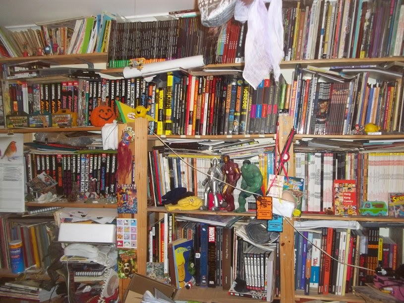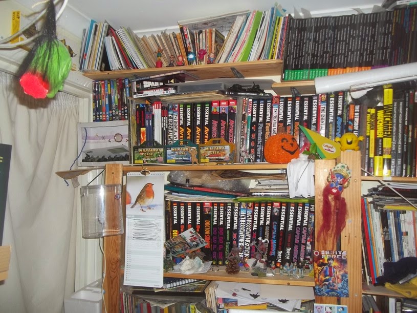 Anyway, I thought, as no one has really asked how a sad, old comic geek-cum-naturalist lives, I'd show you so, as we enter Room Oblivion to the right (this is handy for any potential suicidal burglars -I take no prisoners)....